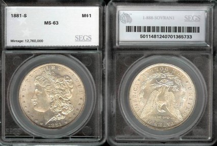 1881s Morgan Dollar in a SEGS MS63 holder.