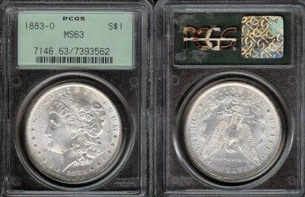 1883o Morgan Dollar in an older PCGS MS63 holder. A beautiful coin with very light peripheral toning. The coin looks better than the designated grade on the slab.