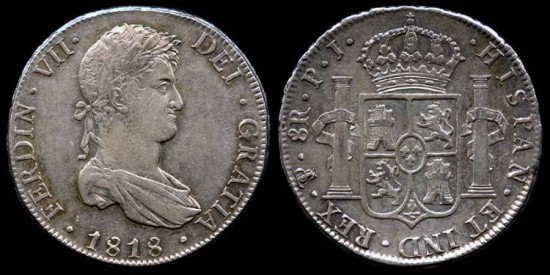 1818 PJ-PTS Bolivia 8 Reales (Ferdinand VII) AU