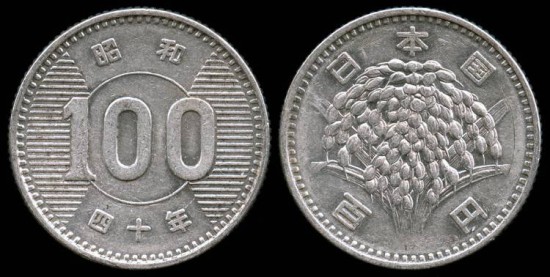 1965 Japan 100 Yen (Y78) AU, Silver.