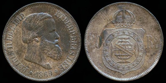 1869 Brazil 20 Reis AU