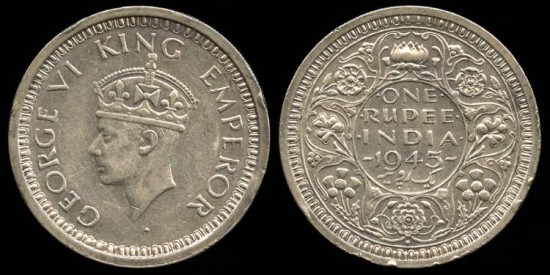 1945 B India (British) 1 Rupee AU