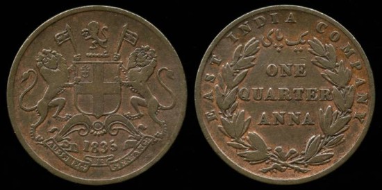 1835 India 1/4 Anna VF