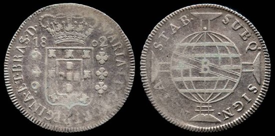 1802 B Brazil 640 Reis - Maria I (Pedro III) - VF, silver. Scarce denomination, scarce date!