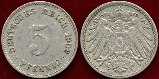 GERMANY 1902-J.... 5 PFENNIG XF