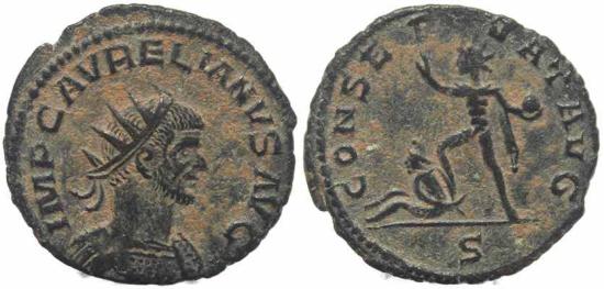 Minted: Antioch Size: 22mm Weight: 3.24 grams Obverse: IMP C AVRELIANVS AVG, radiate, cuirassed bust right Reverse: CONSERVAT AVG, Sol walking left, treading on seated captive, holding globe, right hand raised. Mintmark S