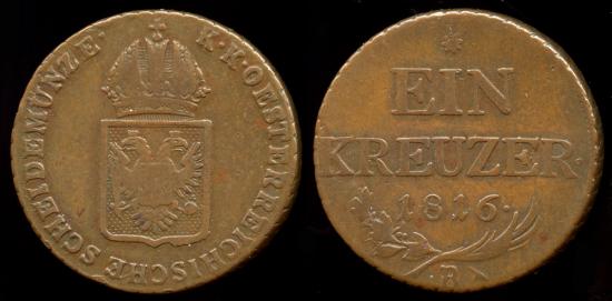 1816 B Austria 1 Kreuzer (KM-2113) VF.