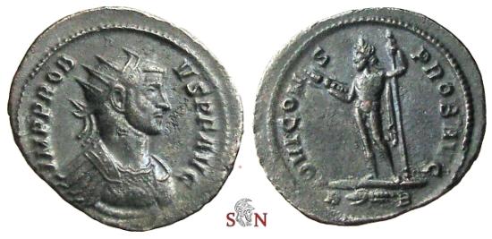 Probus Antoninianus, struck AD 276-282 at Rome mint. Obv: IMP PROBVS P F AVG, radiate and cuirassed bust right. Rev. IOVI CONS PROB AVG / R thunderbolt B (in exergue), Jupiter standing left, holding thunderbolt and scepter. 3,09 g, 22 mm. RIC 173 scarce |