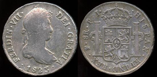 1823 PTS-PJ Bolivia 8 Reales (KM-84) - Ferdinand VII - VF, silver.