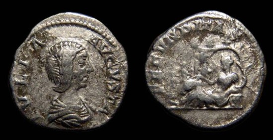 Julia Domna, Denarius, 207 AD. Tellus & 4 Seasons. Scarce Reverse Type