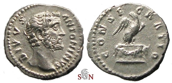 Rev.: CONSECRATIO, Eagle standing right, head left, on garlanded altar.