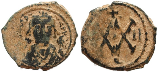 Byzantine coin of Maurice Tiberius 582-602 AD AE Half Follis - Antioch - Year II