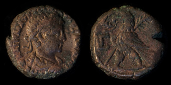 EGYPT, ALEXANDRIA Severus Alexander (222-235 A.D.) Potin Tetradrachm, approx. 22 mm, 12.58 g. Dated Yr. 3 (223/4 A.D.) Obv: A KAI MAP AVP CEVHP AΛΞANΔPOC EVCEB, laureate & draped bust of Severus Alexander right Rev: eagle standing left, a wreath in its’ beak, a palm branch behind. LΓ (yr. 3) before cf: Dattari (Savio) 4415, Milne 2914, Emmett 3098, Köln 2414 VF |