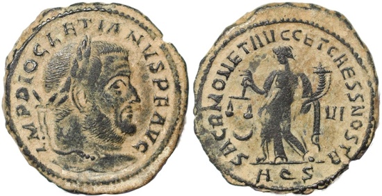 Roman coin of Diocletian Ae large follis - SACR MONET AVGG ET CAESS NOSTR