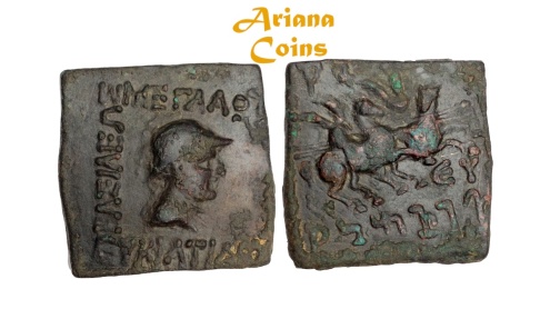 Baktrian Kings. Eukratides I. Circa 170-145 BC. AE Quadruple Unit. 21-20mm,