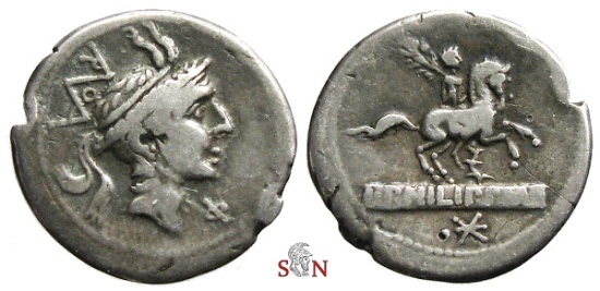 L. Marcius Philippus Denarius, struck 113/112 BC at Rome mint. Obv: Head of King Philippus V. of Macedon right, wearing