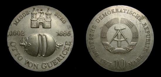 Germany 1977 Democratic Republic 10 Mark, Otto Von Guericke, KM-65, UNC