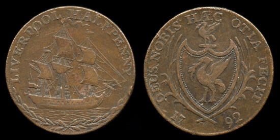 1792 Great Britain - LANCASHIRE - Liverpool Halfpenny Condor Token -- OBV:
