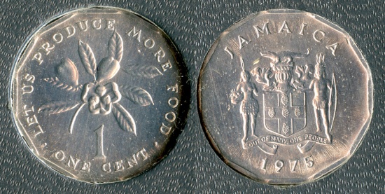 1975 FM Jamaica 1 Cent (KM-51) - FAO "Ackee Fruit" - BU. Tiny mintage of only 4,834 pieces!