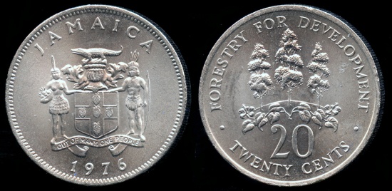1976 Jamaica 20 Cent (KM-69) - FAO "Blue Mahoe Tree" - BU