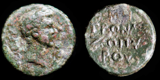 IONIA, ERYTHRAE Augustus (27 B.C. – 14 A.D.) Æ, 15.5 mm, 3.21 g. (ca. 10 B.C.) Metronax Zopyrou, Magistrate Obv: EPY, laureate head of Augustus right, lituus before Rev: *MH / TPΩNAΞ / ZΩΠY / POY in four lines