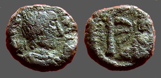 Justin I AE Pentanummium, Tyche of Antioch in shrine, Antioch.