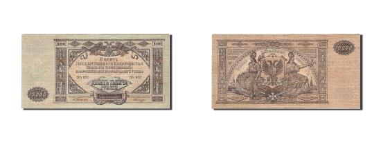 | | Banknote, Russia, 10,000 Rubles, 1919, 1919, KM:S425a, AU(55-58) | | | Watermark: Mosaic - <FCY>A<FHV>; <FCY>W<FHV>., Double eagle at upper center., Monument with cross. Woman seated with lance at left, woman seated with sword at right., Brown on green and dull orange underprint. | | FEATURES |