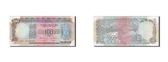 | | Banknote, India, 100 Rupees, 1979, AU(55-58) | | | Signature 86., Like #85 but without bar under denomination at lower right. Signature 85. Deep red signature., Dam, agricultural work at center., Black, deep red and purple on multicolor underprint, (pink at center). | | FEATURES |