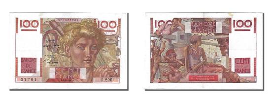| | Banknote, France, 100 Francs, 100 F 1945-1954 ''Jeune Paysan'', 1947 | | | Signature P. Rousseau and P. Gargam. 3.4.1947-19.5.1949., Farmer with two oxen., Man, woman and children at dockside., Brown, red and multicolor. | | FEATURES |