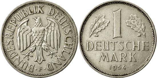 | | Coin, GERMANY - FEDERAL REPUBLIC, Mark, 1954, Stuttgart, | | | Eagle, Denomination flanked by oak leaves, date below | | FEATURES |
