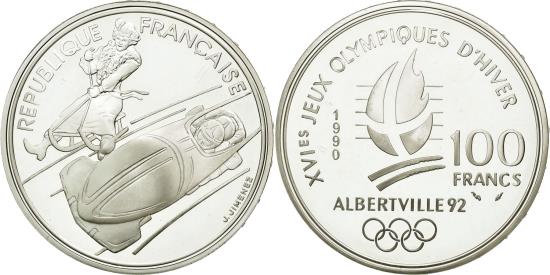 | | Coin, France, 100 Francs, 1990, , Silver, KM:981 | | | Bobsledding, Games logo, value and legend | | FEATURES |