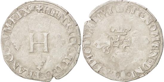 | | Coin, France, Demi Gros de Nesle, 1551, Paris, , Silver, Sombart:4458 | | | + HENRICVS . II . DEI . G . FRANCORVM . REX (crown). H crowned between three fleur de lys, (Crown) SIT . NOMEN . DNI . BNEDICTVM (Crown) 1550. Cross fleurdelisée | | FEATURES |