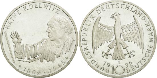 | | Coin, GERMANY - FEDERAL REPUBLIC, 10 Mark, 1992, Karlsruhe, Germany, | | | Denomination divides date below eagle, Figure at easel drawing, dates below | | FEATURES |