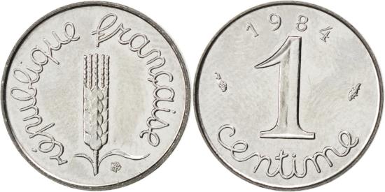| | Coin, France, Épi, Centime, 1984, , Stainless Steel, KM:928, Gadoury:91 | | | Épi, Cursive legend surrounds grain sprig, Cursive denomination, date at top | | FEATURES |