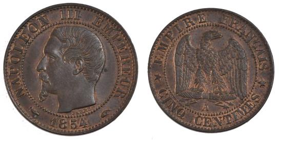 | | Coin, France, Napoleon III, Napoléon III, 5 Centimes, 1854, Paris, | | | Napoléon III, Head left, Eagle | | FEATURES |