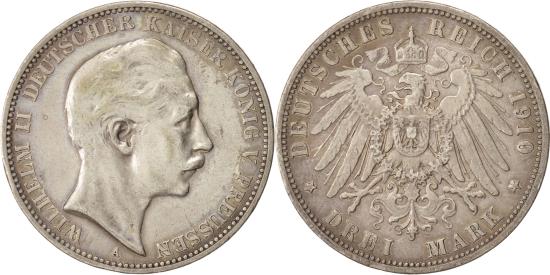 | | Coin, German States, PRUSSIA, Wilhelm II, 3 Mark, 1910, Berlin, | | | Head right, Crowned imperial eagle with shield on breast | | FEATURES |