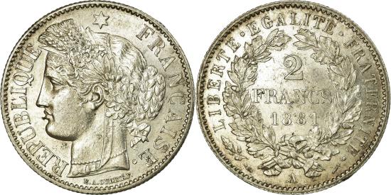 | | Coin, France, Cérès, 2 Francs, 1881, Paris, , Silver, Gadoury:530a | | | Cérès, Laureate head left, Denomination within wreath | | FEATURES |