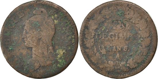 | | Coin, France, Dupré, Decime, 1797, Paris, , Bronze, KM:645.1 | | | Dupré, Liberty head left, Value within oak wreath, REPUBLIQUE FRANCAISE <Bullet> * | | FEATURES |