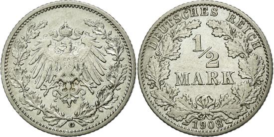 | | Coin, GERMANY - EMPIRE, 1/2 Mark, 1908, Karlsruhe, , Silver, KM:17 | | | Denomination within wreath, Crowned imperial eagle with shield on breast within wreath | | FEATURES |