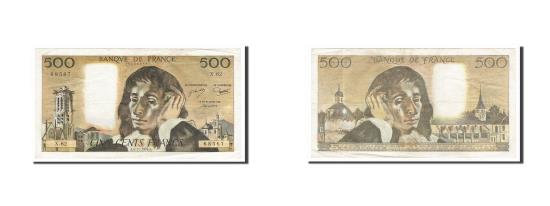 | | Banknote, France, 500 Francs, 500 F 1968-1993 ''Pascal'', 1976, 1976-11-04 | | | Signature P. A. Strohl, G. Bouchet and J. J. Tronche. 1.4.1976-7.6.1979., Tower of St. Jacques in Paris at left, Blaise Pascal at center., Blaise Pascal at left, abbey of Port Royal., Yellow-brown and dark brown. | | FEATURES |