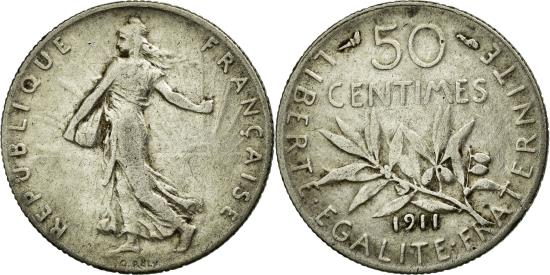 | | Coin, France, Semeuse, 50 Centimes, 1911, , Silver, Gadoury:420 | | | Semeuse, Figure sowing seed, Leafy branch divides date and denomination | | FEATURES |
