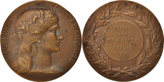 | | France, Medal, Offert par Mr. Faure, Député, History, XIXth Century, Dupuis.D | | | Laureated bust right, Wreath, RÉPUBLIQUE FRANÇAISE, OFFERT / PAR / MR FAURE / DÉPUTÉ | | FEATURES |
