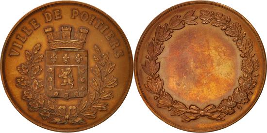 | | France, Medal, Poitiers City, Politics, Society, War, , Bronze | | | Crowned coat of arms, Wreath, VILLE DE POITIERS | | FEATURES |
