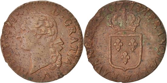 | | Coin, France, Louis XVI, Sol ou sou, Sol, 1778, Lille, , Copper | | | Sol ou sou, Head left, Crowned arms of France | | FEATURES |