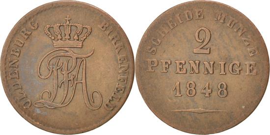 | German States, HESSE-DARMSTADT, Ludwig II, 2 Pfenninge, 1848, Billon, |