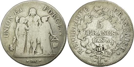 | | Coin, France, Union et Force, 5 Francs, 1799, Bayonne, , Silver | | | Union et Force, Hercules group, Value within oak wreath, UNION ET FORCE | | FEATURES |