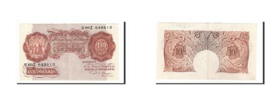 | | Banknote, Great Britain, 10 Shillings, 1948, Undated (1949-1955), KM:368b | | | Signature P. S. Beale. (1949-55)., Seated Britannia at left. Watermark: Head of Minerva., Brown-violet and brown on gray and pink underprint. | | FEATURES |