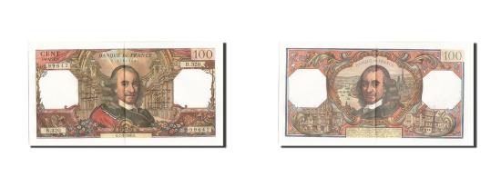 | | Banknote, France, 100 Francs, 100 F 1964-1979 ''Corneille'', 1968, 1968-03-07 | | | Signature R. Tondu, G. Bouchet and H. Morant. 5.10.1967-1.4.1971., Pierre Corneille at center, Theater in Versailles around., Corneille's bust in cartouche at center, View of Rouen., Multicolor. | | FEATURES |
