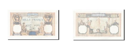 | | Banknote, France, 1000 Francs, 1940, 1940-05-23, AU(50-53), Fayette:38.47 | | | Signature H. de Bletterie, P. Rousseau and R. Favre-Gilly. 24.3.1938-18.7.1940., Ceres at left, Mercury at right, two small angels below. Signature title: LE CAISSIER GÉNÉRAL., Four different craftsmen., Ochre, blue and multicolor. | | FEATURES |
