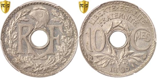 | Coin, France, Lindauer, 10 Centimes, 1935, Paris, PCGS, MS65, |